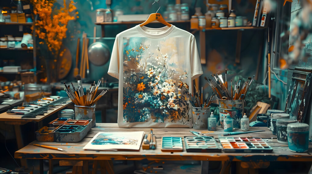 Artistic Workshop: Watercolor Painting T-Shirt Design on a Table